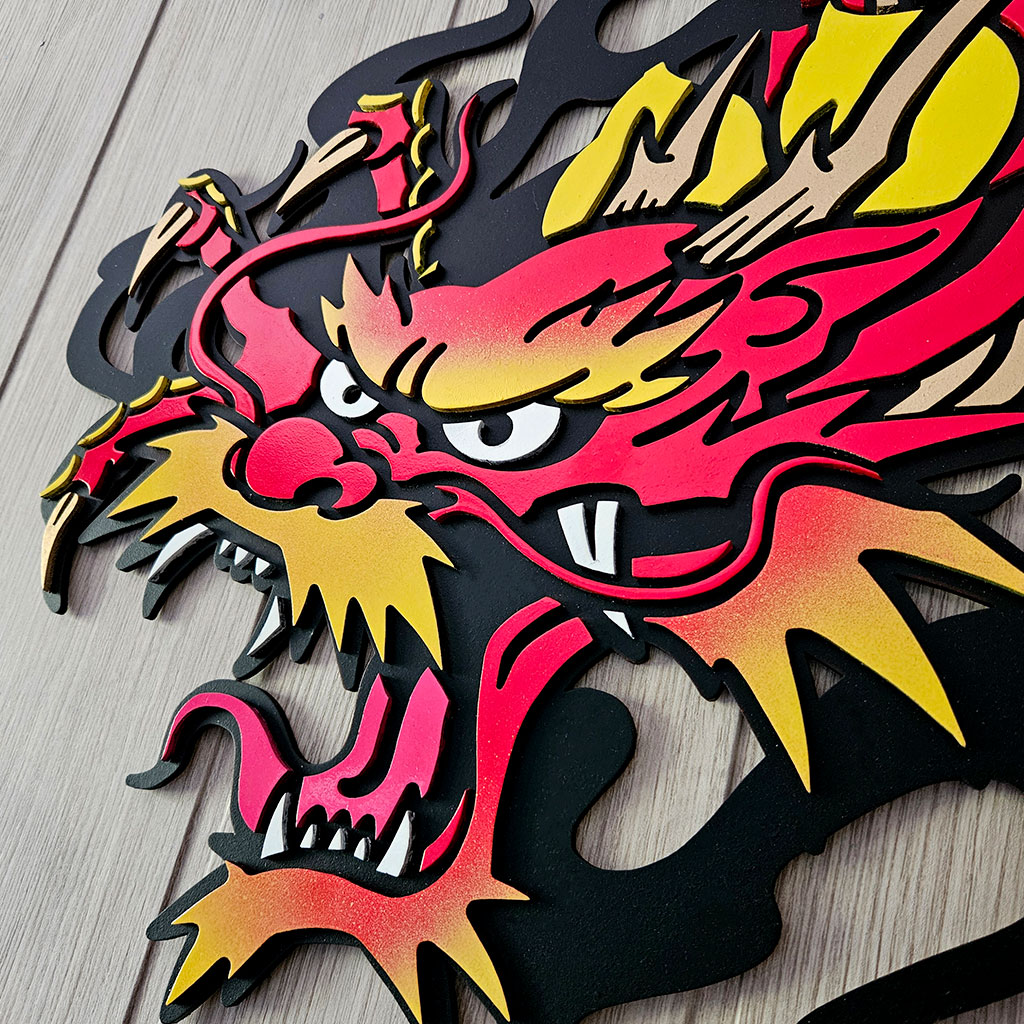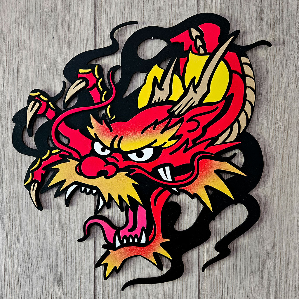 Este arte mural de dragón japonés está inspirado en los tatuajes clásicos orientales, aunque adaptado a mi estilo, y está pensado para llenar de personalidad ese rincón especial: tu habitación, tu escritorio o ese lugar que te acompaña cada día. Cada pieza está diseñada en mi pequeño estudio en El Escorial (Madrid), donde diseño, corto la madera con láser y la pinto a mano con todo el cariño del mundo.